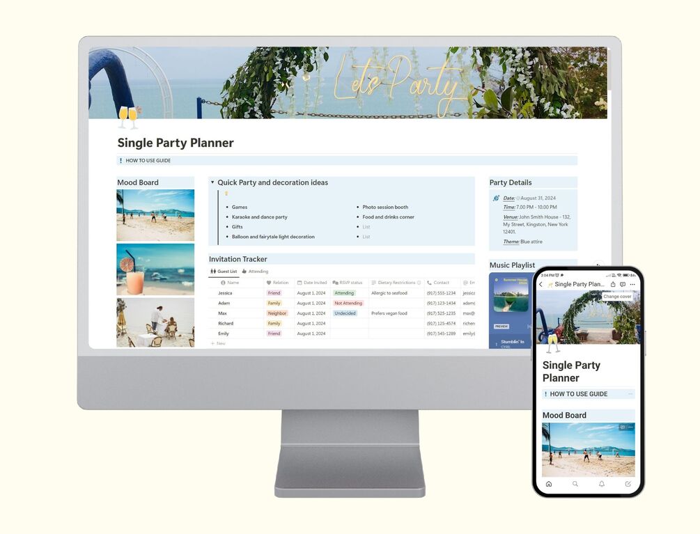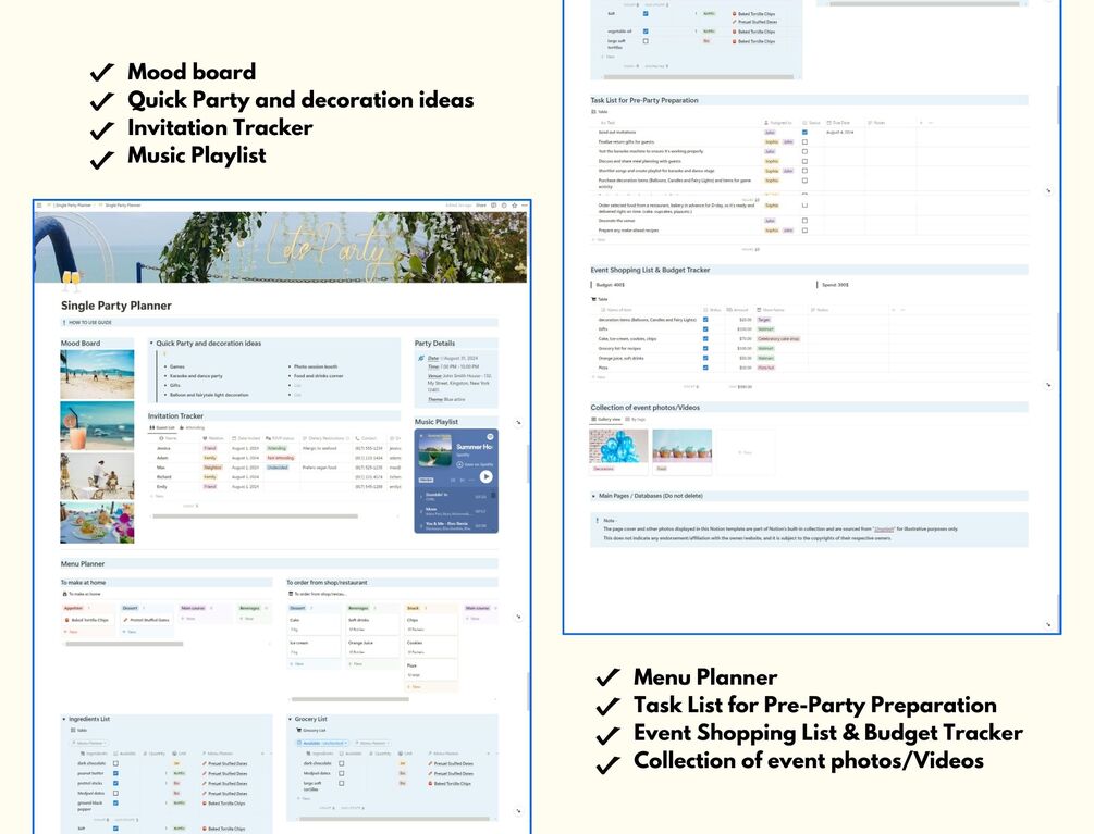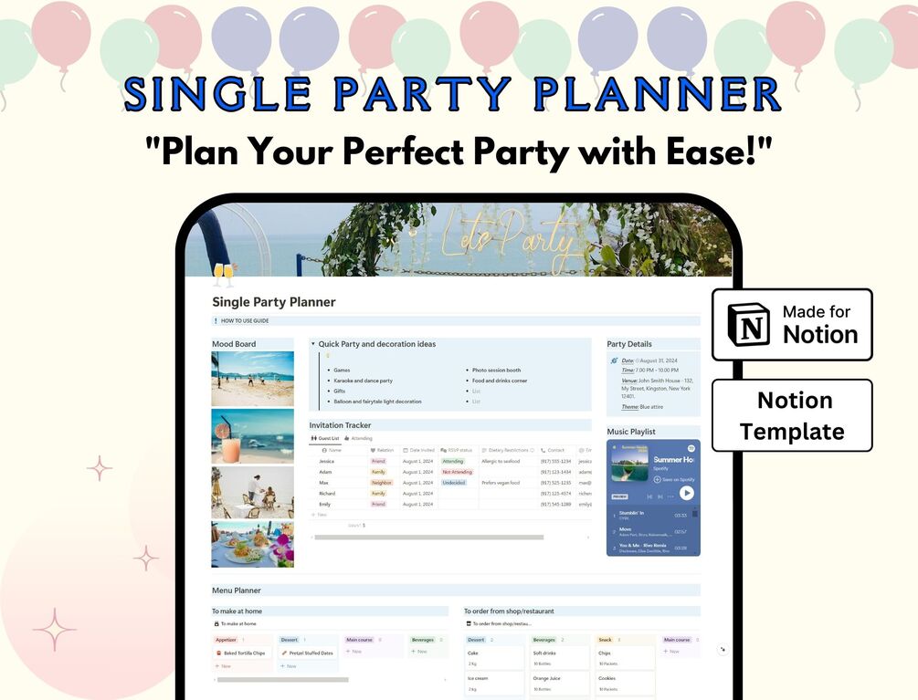 Single Party Planner / Event planner Notion Template